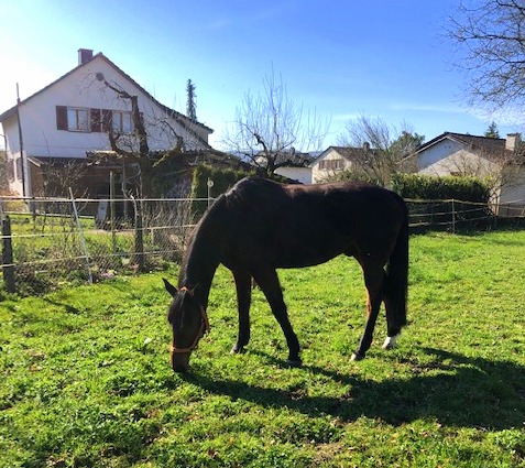 ... sie geniesst nach 3 Schneerennen die Zeit auf der Weide.