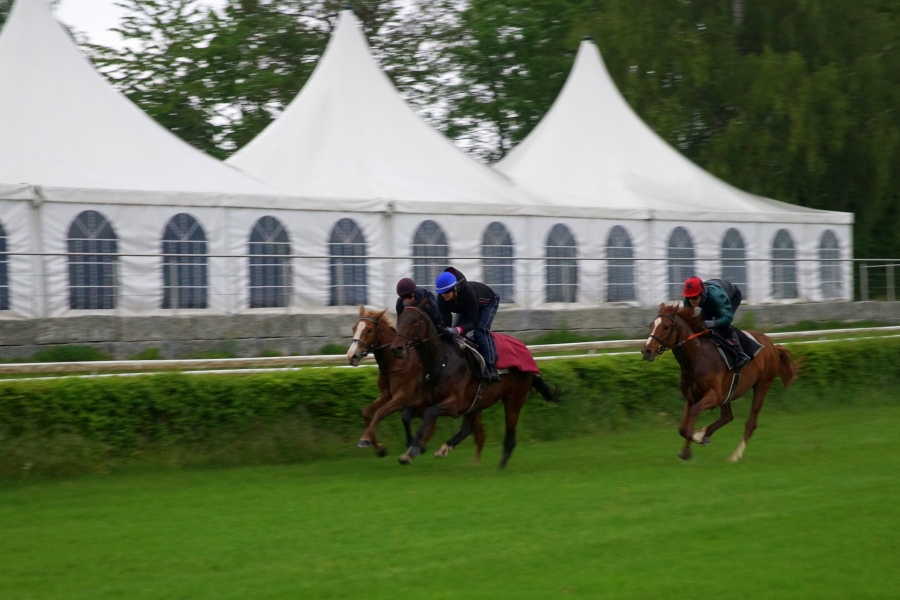 Statt auf der Sandbahn konnte am Dienstag in Dielsdorf auch auf Gras galoppiert werden. (Foto: M. Monstein)