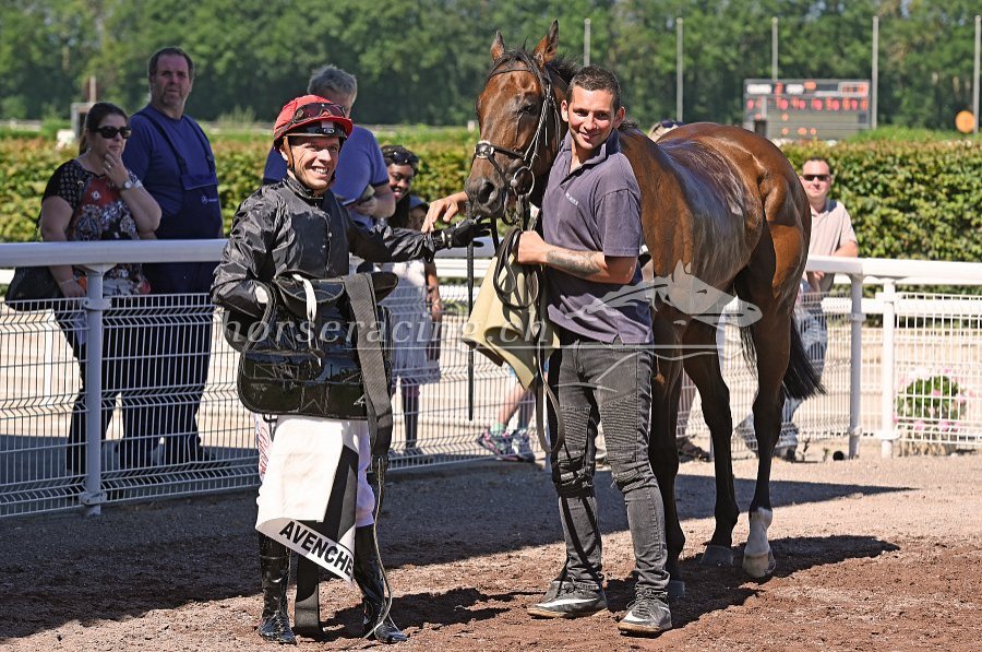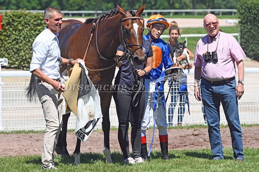Vierter Saisonsieg für Trainerin Claudia Erni - ganz rechts Besitzer Paul Baumgartner.