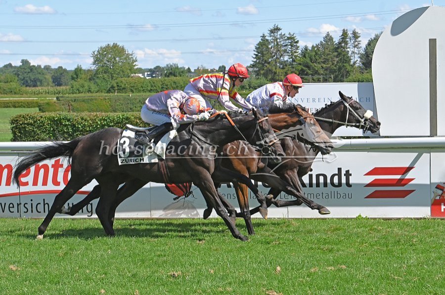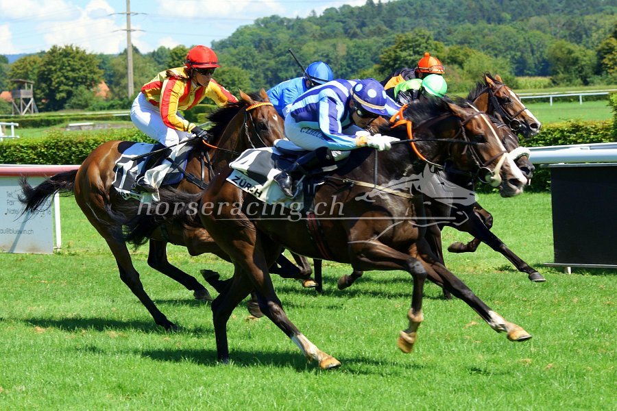 Der packendste Finish gestern: Gold Street (Fabrice Veron mit dem 2. Streich) gewinnt vor Seacret und In The Field. Foto von Ueli Wild.
