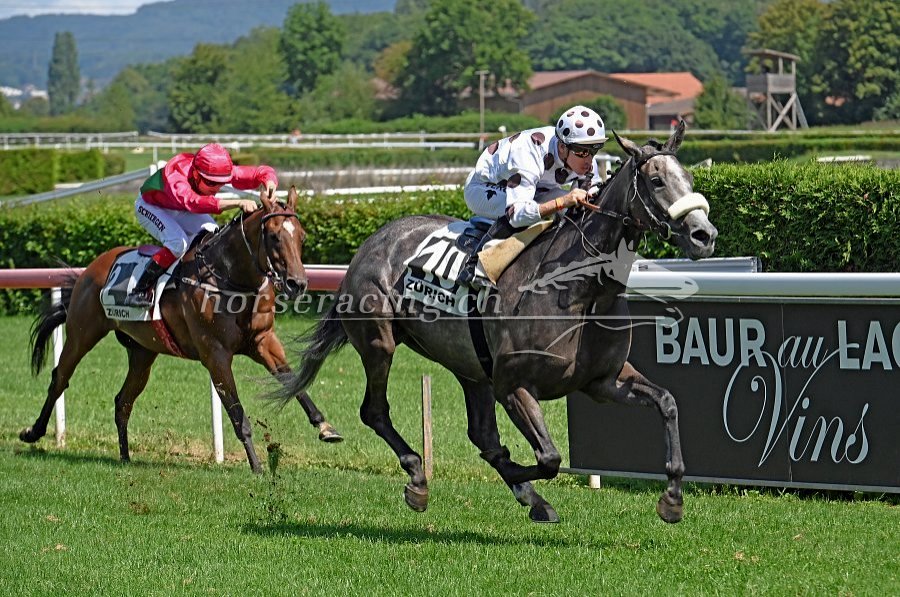 Der erste Streich von Fabrice Veron: Jeföhl gewinnt vor Qadan (Dennis Schiergen). Foto von Ueli Wild.