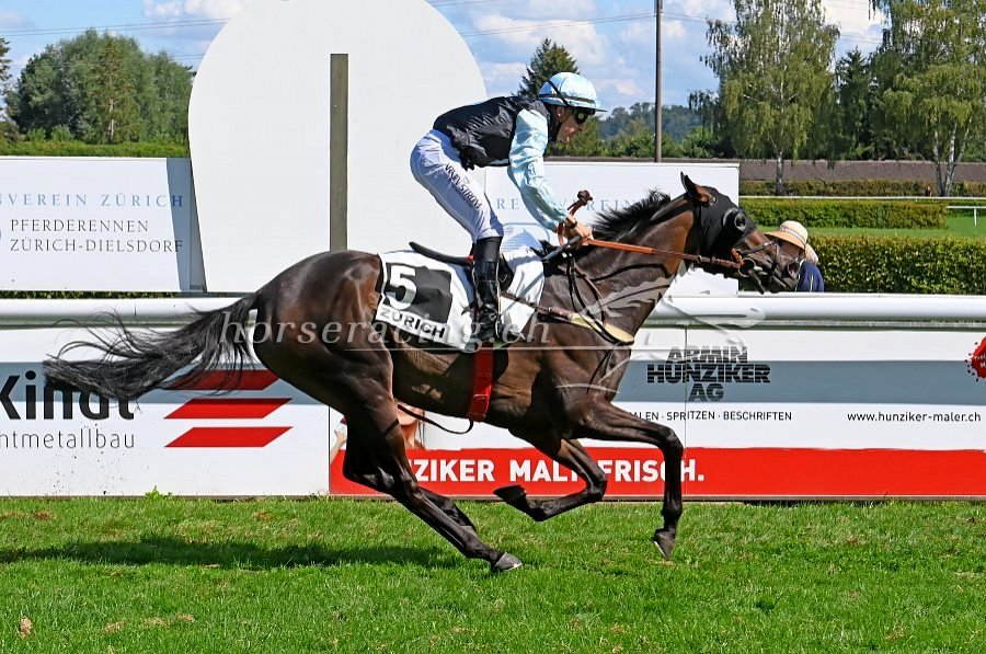 Vernasca gewinnt das Silberblaue Band von Zürich und beschert Tim Bürgin seinen 100. Sieg. Ueli Wild hat's im Bild festgehalten.