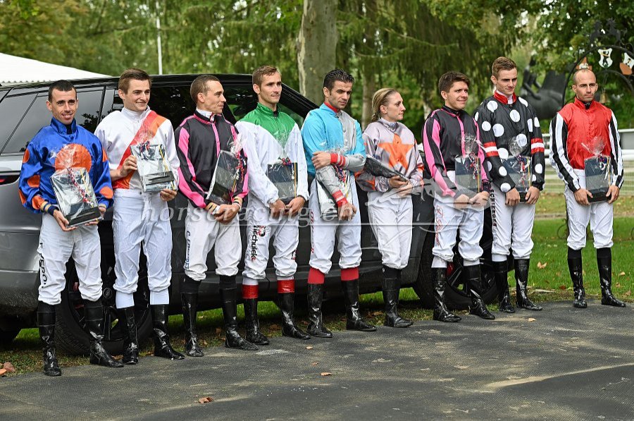 Die Sattelkünstler im 45. Grand Prix Landrover - Jockey Club: Über 3500 Siege vereint auf einem Bild.