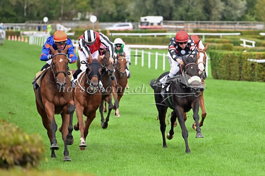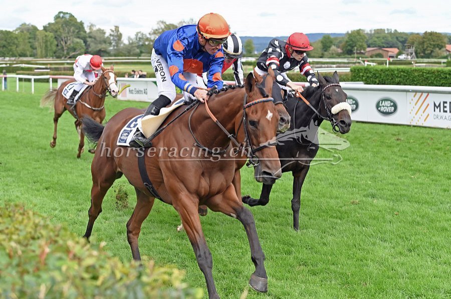 Die Entscheidung im Grand Prix Land Rover Jockey Club bahnt sich an: Moderator (links mit Fabrice Veron) hier noch vor Nubius (rechts) und zwischen den beiden kommt San Salvador (alle Fotos von Ueli Wild).