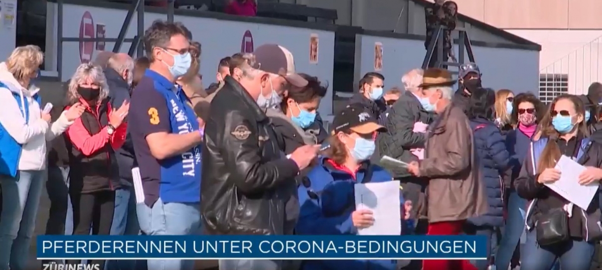 Zum Glück hatten die RVZ-Verantwortlichen in der Woche vor dem letzten Renntag der Saison eine strikte Maskenpflicht angeordnet. Man stelle sich vor, TeleZueri ist da und es sieht aus wie es ohne Maskenpflicht eben ausgesehen hätte... Der Beitrag am Sonntag Abend in den Züri-News wurde just nach einem Bericht aus dem Shoppi Tivoli ausgestrahlt, wo es eine enorme Menschenansammlung mit Leuten ohne Maske gegeben hatte - da wäre es mit Sicherheit nicht gut angekommen, wenn im Horse Park die Leute ebenfalls ohne Masken dicht nebeneinander gestanden oder gesessen wären.