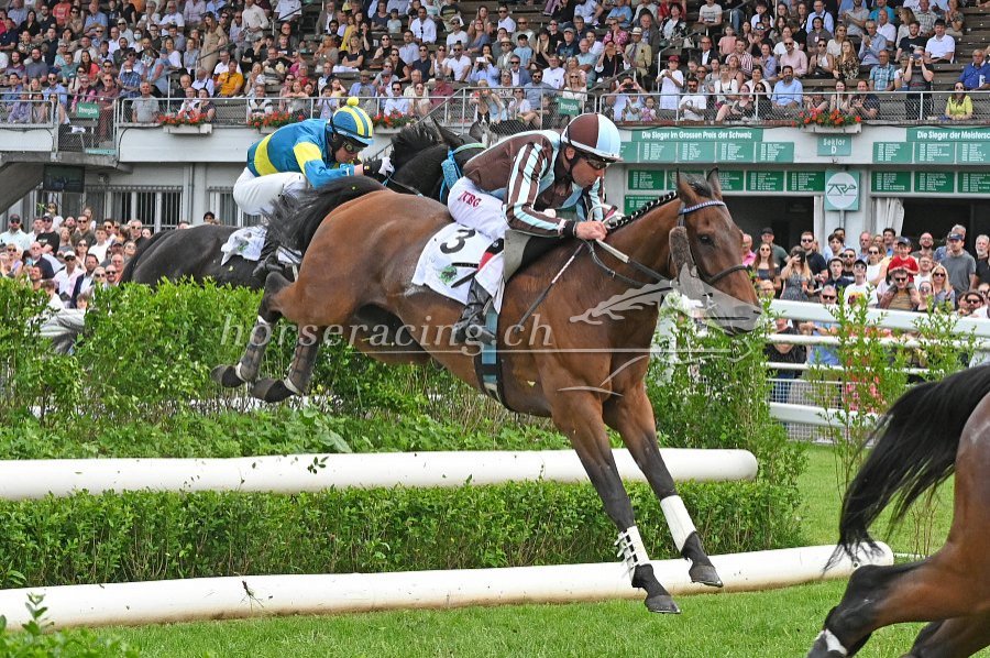 Mit BERGERAC tritt im Grossen Preis der Schweiz der Titelverteidiger an. Der Vertreter des Stalles Blue Devil hatte den Sieg letzten Herbst am grünen Tisch zugesprochen bekommen, nach der Disqualifikation des "positiv" getesteten Baraka de Thaix, der diesen Frühling seine Karriere bekanntlich beendet hat. Im Grossen Preis der Stadt Zürich musste sich BERGERAC seinem Trainingsgefährten um 8 Längen geschlagen geben. Anschliessend schlug er ihn in dessen letztem Rennen im Grossen Preis des Kantons Aargau. Und in Frauenfeld gewann der Schützling von Chantal Zollet die Grosse Steeple Chase am Pfingstmontag überlegen vor BARACLAS und FEUX DE BOIS.