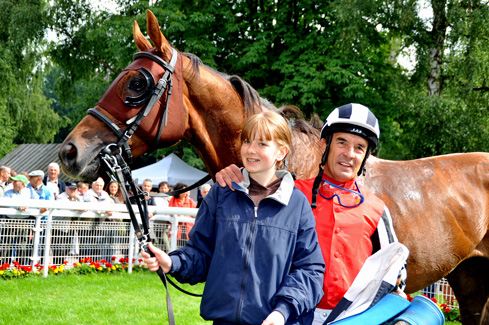 Eineinviertel Stunden später doppelte Rousseau mit Henk Grewe nach - gleich mit 4 Längen entschied der wie Löwengang in den Farben seiner Trainerin laufende Where or When-Sohn ein mit 9000 EUR dotiertes Course G über 2400 Meter für sich.