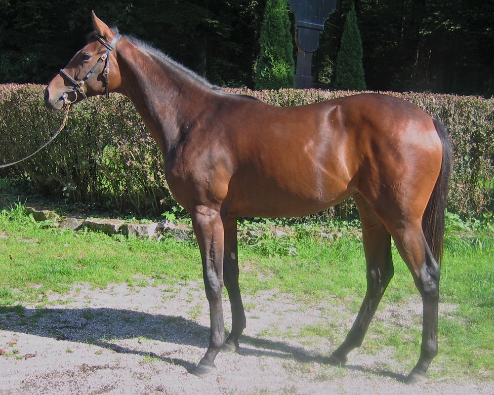 Der Vater ist der französiche Derby Sieger Blue Canari mit einer Gewinnsumme von € 689’190. Sein Vater Acatenango war Champion Rennpferd und Deckhengst.