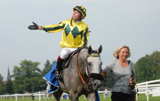 Ein Bild aus glücklichen Tagen: Anita Sigg führt in Luzern ihren geliebten Great Spain, den sie im Training ritt, als Sieger von der Bahn (Foto: Ueli Wild).