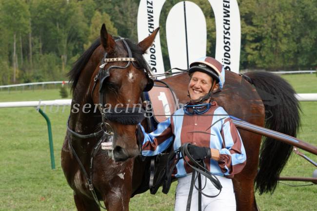Claudia Koller nach einem Sieg mit Belgino in Maienfeld: Jetzt hat sie noch mehr Grund zum Strahlen.