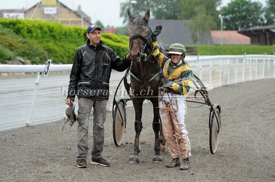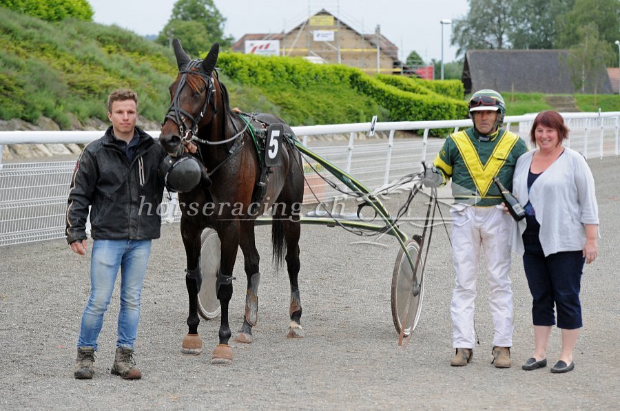 Fahrer und Trainer Marc-André Bovay bei der Siegerehrung für Vinci du Macherel (Foto: Ueli Wild)