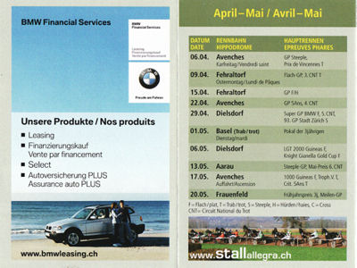 Ebenfalls wird es im 2008 wieder unseren beliebten horseracing.ch-Taschenkalender mit allen Renndaten geben.