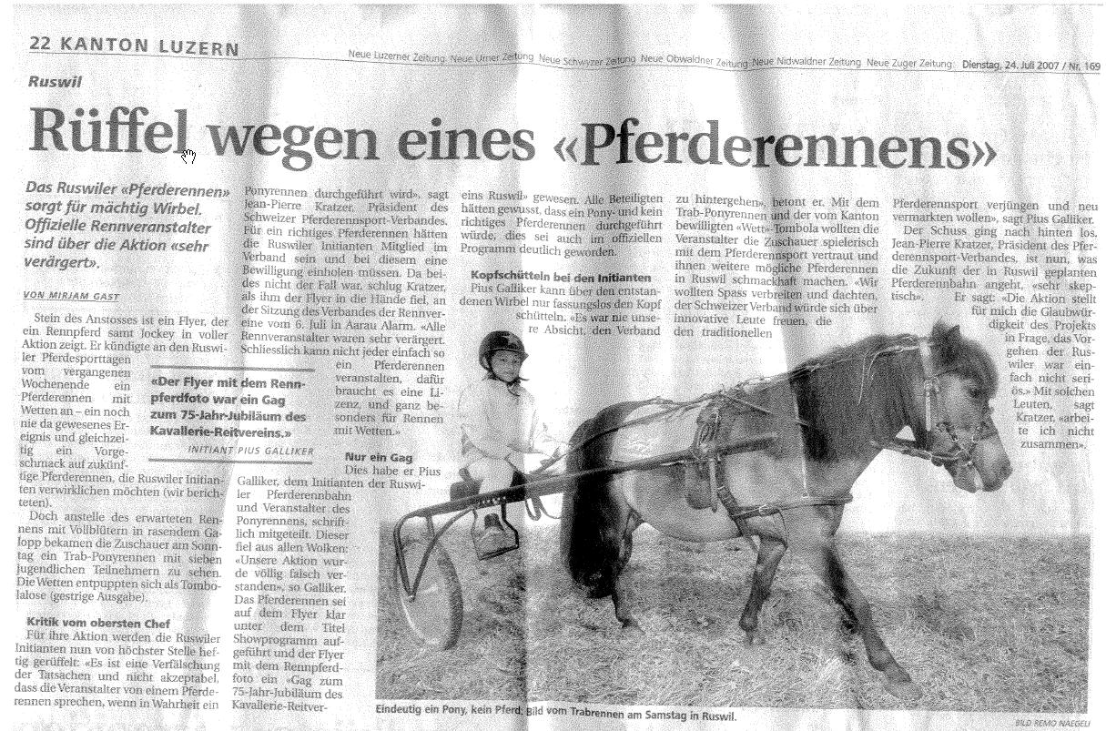 Die Tatsache, dass die Autorin auch das Datum und den Ort der VRV-Versammlung, an welcher das Ganze diskutiert wurde, genannt hat, legt die Vermutung nahe, dass einige Informationen aus der Lektüre von horseracing.ch stammen. Wir nehmen das als Kompliment!